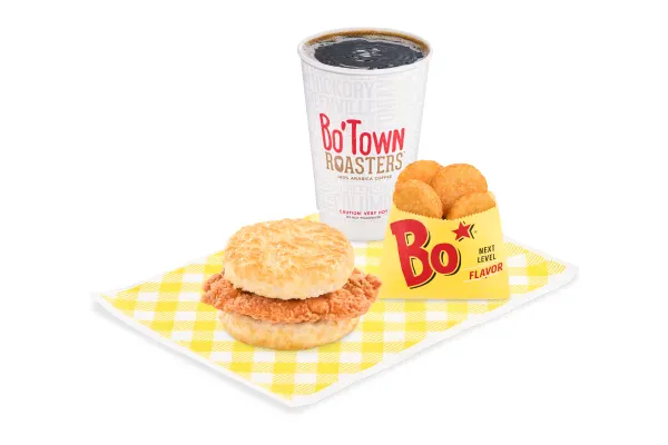 A tender, juicy chicken breast marinated in a secret mix of herbs and spices. It’s served on a warm buttermilk biscuit that adds a soft, buttery taste to every bite. You can pair it with a hot coffee, a medium soda, or crispy Bo-Tato Rounds® for a delicious and filling meal.