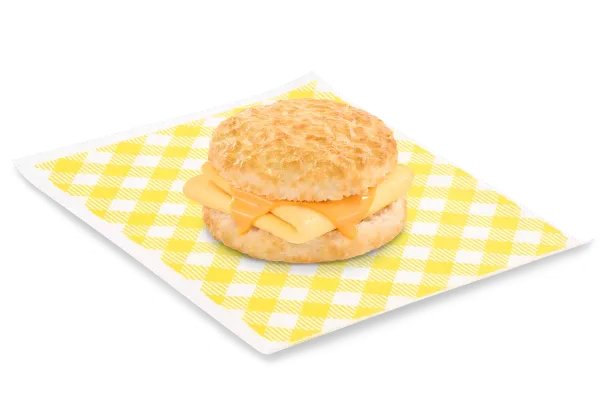 Scratch-made buttermilk biscuit filled with sharp American cheese melted and topped with a fluffy egg.