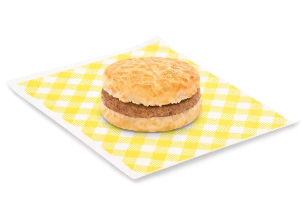 Farmhouse seasoned sausage tucked in a buttermilk biscuit. Get a drink of your desired option between a medium soda, coffee, or a Bo-Tato Rounds®.